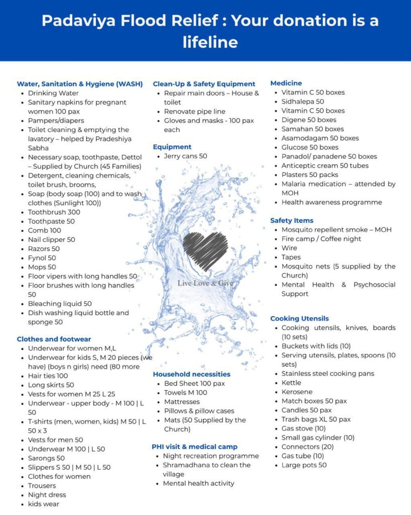 The recent floods in Padaviya have severely impacted 150 families, leaving many in urgent need of assistance. In response, this fundraiser has been launched to provide both immediate relief and long-term support for affected children and families.